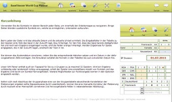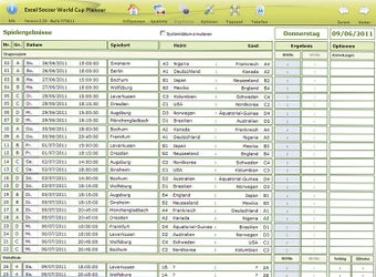 Im Excel Soccer World Cup Planner sind alle Spiele der Gruppenphase der Frauenfußball-WM mit Datum, Anpfiffszeit, Spielort und Gruppe hinterlegt. Die Ergebnisse trägt der Nutzer selbst ein. Excel Soccer World Cup Planner erstellt aus den Ergebnisse automatisch den Spielplan für die Finalrunde. Auf Wunsch hebt man seine Lieblingsmannschaft über die Optionen hervor.